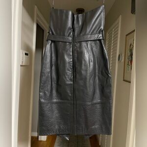 Camilla and Marc Paneled Leather Dress EUC! Size 6 Color: Jet Black Strapless, surplice neckline. Belted waist with golden clip buckle. Sheath silhouette. Overlap front. Back zipper closure. Fully lined. In excellent, like new condition.