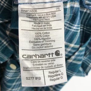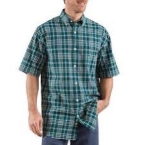 From work to the weekend, this men's plaid button-down has a lightweight poplin construction that keeps you comfortable when you're on the move. The shirt is garment-washed for a true fit and finished with a Carhartt patch along the utility pocket.
