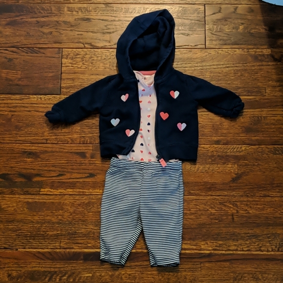 EUC Carter's Heart Outfit in navy blue and pink. Size NB No stains- looks brand new!