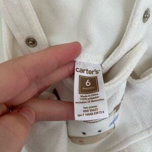 EUC | Carter’s baby unisex fleece cow patch white cream overalls 6 months