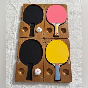 Excellent condition. Includes one ball in each set only. Paddles and balls are in excellent condition and have barely been used. No obvious signs of wear. Minor scratching on the wood cases.