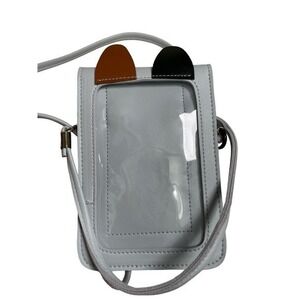 EUC Cat Lanyard Crossbody Light Grey w/ Brown & Black Ears & Squishmallow Charm. This darling little bag is in excellent condition. I am not sure it was event used. Sweet little panda squishmallow charm with the option to remove it you'd like. Snap closure, Two compartments inside, one main compartment and one clear compartment that can also be used as a lanyard or easy ID/ Passport or cell phone slot. Embroidered black cat face.