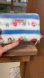 Stylish wallet with blue stripes and red floral pattern. Perfect for everyday use.