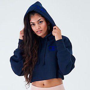 EUC Champion Cropped Navy Blue Script Hoodie XS