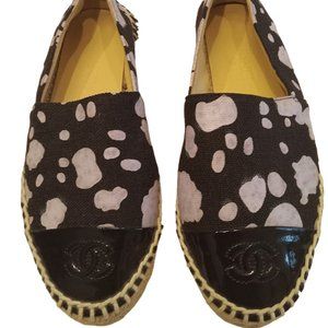 EUC | Chanel CC Patent Leather Cap-Toe Slip-on Espadrilles Loafers | Size: EU 37