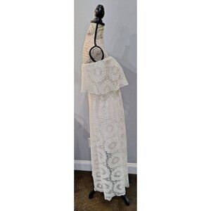 EUC Charlotte Russe White Off-Shoulder Maxi Dress With Lace Overlay & Ruffle/Sz.