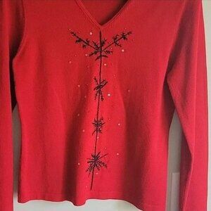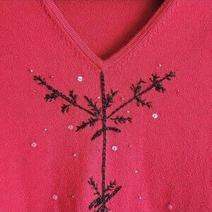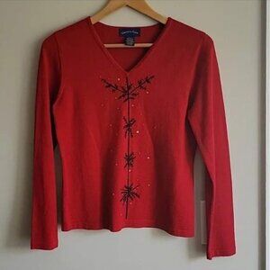 EUC Charter Club Red Snowflake V-Neck Sweater