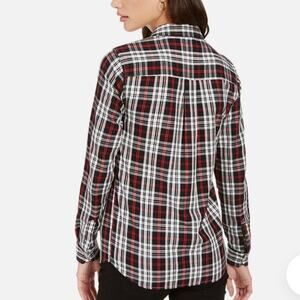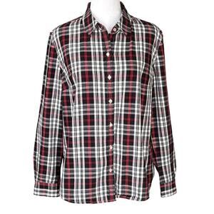 EUC Charter Club Size PL Button Front Plaid Long Sleeve Size Black Red