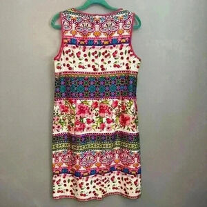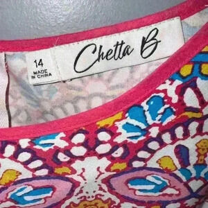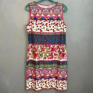 EUC Chetta B Mixed Print Floral Cherry Geo Sheath Shift Dress Size 14