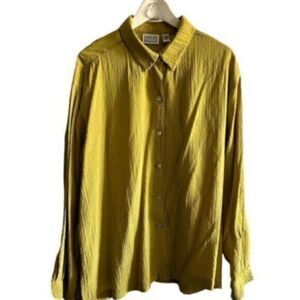 EUC - Chico’s Design Yellow/Green Textured Long Sleeve Blouse/Top Size 12/14