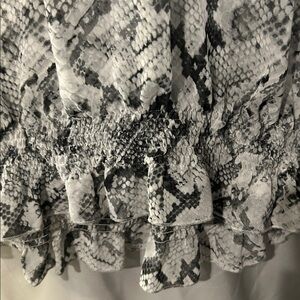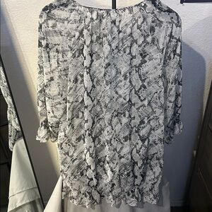 Stylish snake print blouse by Chico's. Features a monochrome design. Semi sheer. Size 2. EUC