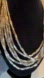 Chico's necklace with multiple silver strands. Features reflective beads for a chic look.