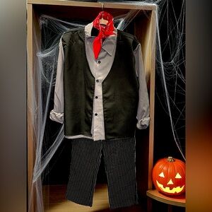 EUC! Chimney Sweep Costume with a Red Scarf & Chimney Brush Prop