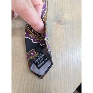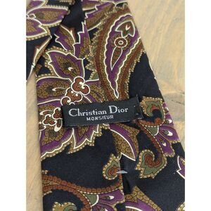EUC Christian Dior 100% Silk Black Burgundy Gold Paisley Neck Tie Quiet Luxury