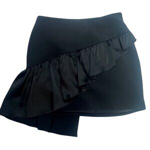 EUC Cinq à Sept Black Asymmetrical Ruffle Mini Skirt Size 4