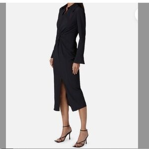 EUC Cinq a Sept Black McKenna Midi Dress Twist Front Slit
