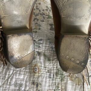 EUC Circle G Honey Leather Side Fringe Round Toe Zip Western Booties Women’s 11 M
