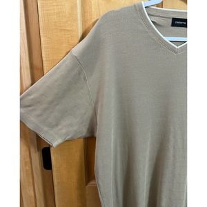 EUC, Claiborne Men’s Sz XXL Tan with Cream Trim V-Neck, Ribbed Short Sleeve Polo