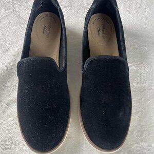 EUC Clarks Serena Brynn Black Fabric Flats size 9N