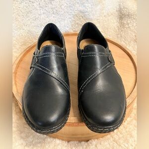 EUC Clarks Women's Caroline Pearl Slip-On Flats Loafer Black Leather Size 8.5M
