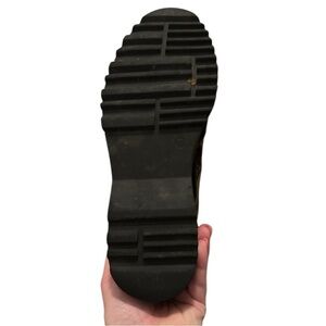 The glint of the lower patent leather, along with the nylon upper and the frizz of raccoon subtly dazzle the senses...