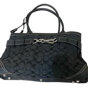EUC Coach Black Canvas Leather Monogram Hand Bag