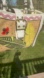The tote bag features a straw or burlap exterior with white leather trim. It has appliqués of leather leaves and a ladybug, which are sometimes adorned with rhinestones. The bag has a magnetic buckle closure, side turn-lock pockets, and a lime twill or green canvas interior lining.
