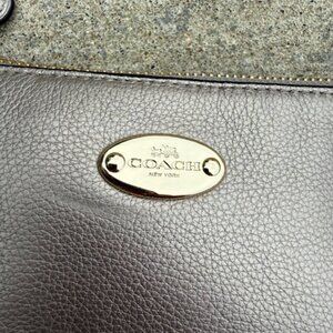Coach wristlet, Coach clutch, Coach purse, Coach metallic purse, Coach pebble leather, Coach taupe gold, authentic Coach bag, Coach evening bag, small Coach bag, Coach credit card slots, Coach multifunction pocket, Coach gold hardware, EUC Coach wristlet, Coach leather clutch, versatile neutral bag