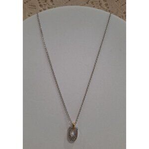 • lver Tone Chain and Signature C Crystal Pendant with a Gold Tone Loop