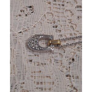 This Coach necklace features a stunning crystal-adorned pendant, adding a touch of elegance to any outfit. The silver-tone chain complements the design, making it a versatile accessory for both casual and professional settings.