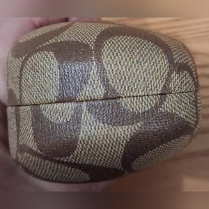 EUC Coach Tan Signature Saffiano Leather Hard Clam Shell Glasses Sunglass Case