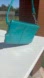 Chic turquoise leather wristlet with detachable strap. Ideal for essentials.