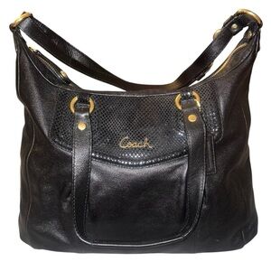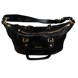 EUC Coach Vintage Black Leather Shoulder Bag with Gold Hardware Croc Detail