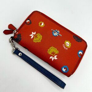 EUC Coach Wild Prairie Print Coated Canvas Double Zip Wallet/Wristlet #F53966