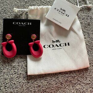 EUC Coach large signature enamel drop earrings #CB410 color pink/gold (ONH)