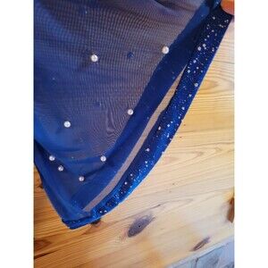 Beautiful cobalt blue color with silver details and white pearls on sleeves.