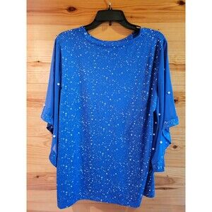 EUC Cobalt Blue Shimmering Top with Pearl Accents on Sleeves, 2XL