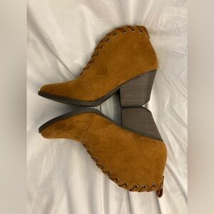 These adorable faux suede booties are in excellent condition. There are no tears stains or damage. They will make an great addition to your wardrobe.