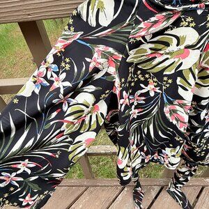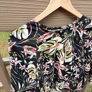 EUC Code x Mode Black Tropical Print Tie-Back Blouse