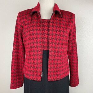 EUC Gorgeous and Classic Coldwater Creek Womens Red/Black Maxi Dress and Matching Zip-up Jacket Size 6P. The dress measures 17 1/2 inches armpit to armpit and 47 inches in length. The jacket measures 19 inches armpit to armpit and 21 inches in length.