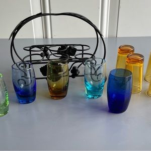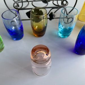 EUC Colorful Shotglass Set With Caddy + Set of 4 Amber Colored Shotglasses