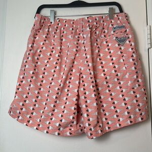 EUC Columbia PFG Omni Shade Swim Trunk Shorts Pink Fish Mesh Lined Size Medium