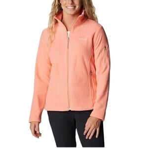 EUC Columbia Women Medium Fast Track Full Zip Up Fleece Neon Orange Coral Reef