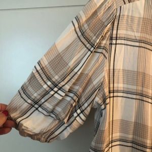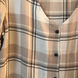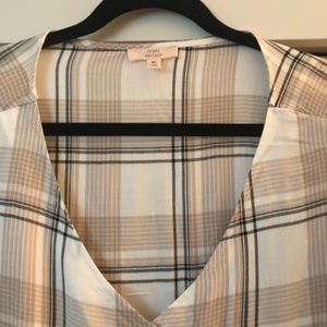 EUC Como Vintage XL Short Sleeve, V-neck, Shirt Cream w/Black and Tan stripes