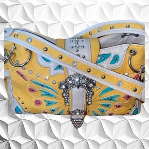 EUC Concealed Carry Boho/Western Purse Yellow & Turquoise Rhinestones