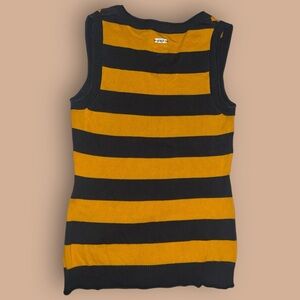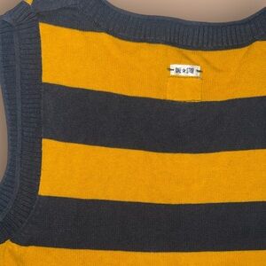 Converse One-Star Yellow / Dark Grey Horizontal Striped V-Neck Sleeveless Sweater Vest, Size Women’s Medium (M 8-10), No Obvious Flaws, Minor Signs of Wear, Overall Excellent Pre-Owned Condition, 100% Cotton, Made in Japan