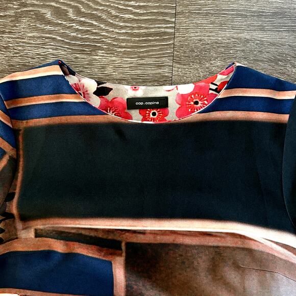 EUC Cop.Copine Paris Megumi Robe Dress Size 40 Shift 3/4 Sleeve Graphic Print