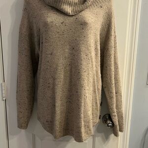 EUC! Cozy oatmeal Beige Cowl Neck Sweater with side buttons Size Large