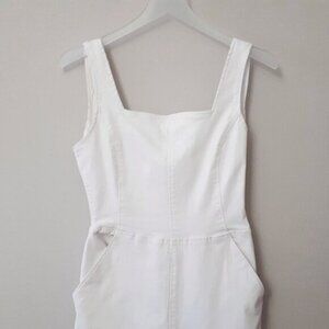 EUC DD77 white denim sleeveless wide leg jumpsuit with statement back, S