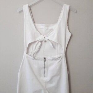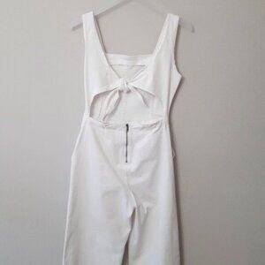 EUC DD77 white denim sleeveless wide leg jumpsuit with statement back
